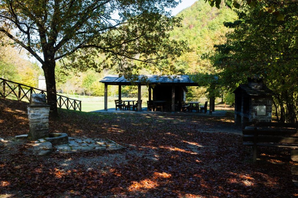 Dietro al ristorante imboccate in salita il sentiero CAI 203 che porta fino al sagrato della chiesa di Rio Petroso (antica parrocchia del Comune di Bagno di Romagna abbandonata nel corso degli anni ’50).